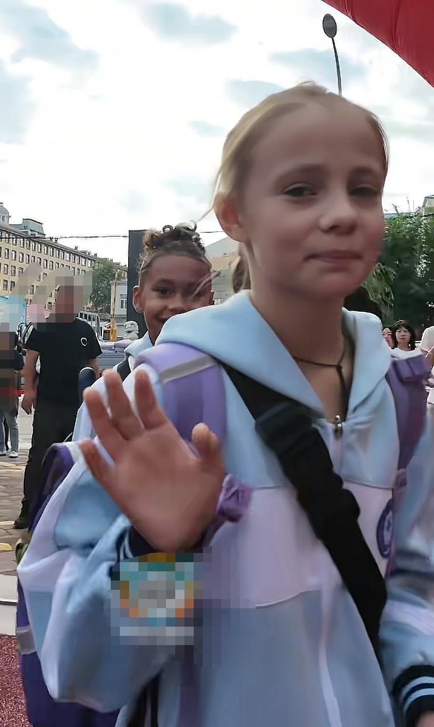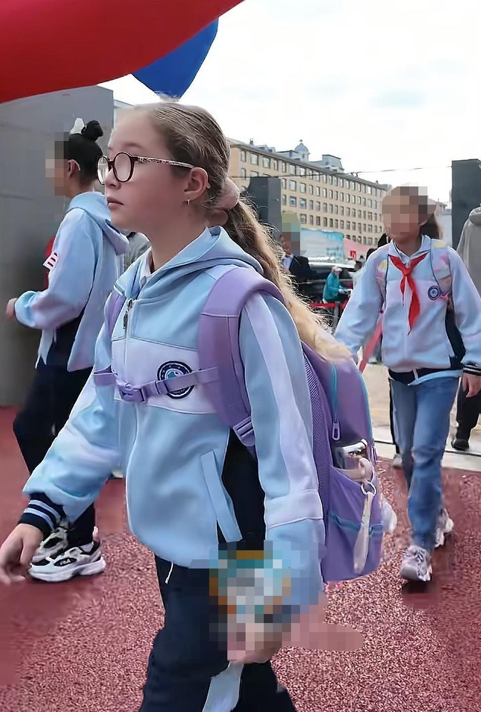 网友拍摄的视频显示,一学校门口出现了多名金发碧眼的小学生,他们统一穿着蓝白色的校服、背着书包,快步走向校园。校门口放置了红色的大拱门,老师站在一旁迎接学生。